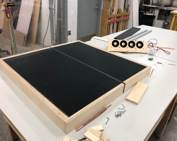 12 • Aluminum honeycomb panel in its frame, before being installed on the apparatus.