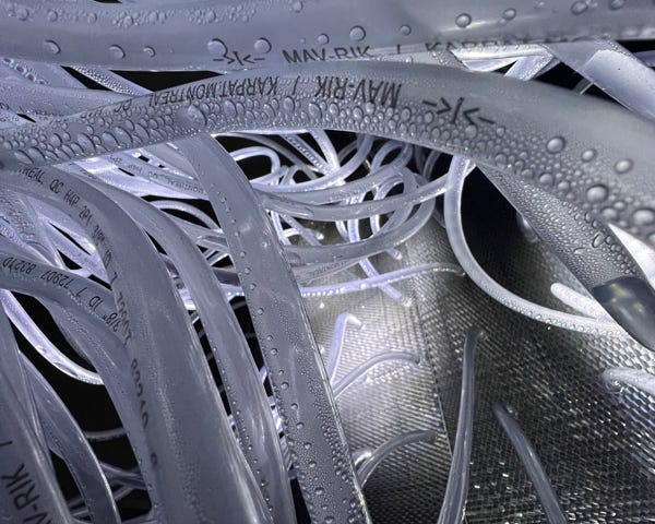8 • Close-up of the vinyl tubes with mist and condensation droplets.