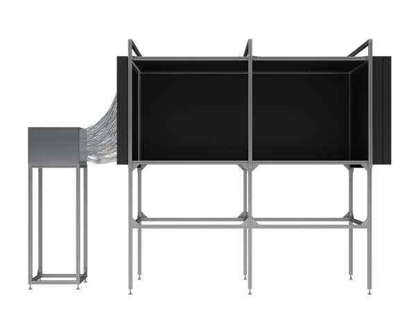 4 • Perspective view of the installation, showing from the inside the honeycomb panel that constitutes the air intake of the enclosure.